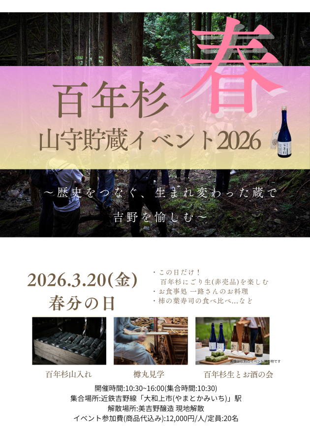 🌟山守イベントに参加しなくても百年杉山守貯蔵2026だけのご購入も可能です。(お届けは9月になります。詳しくはオンラインストアご購入ページをご覧下さい。)