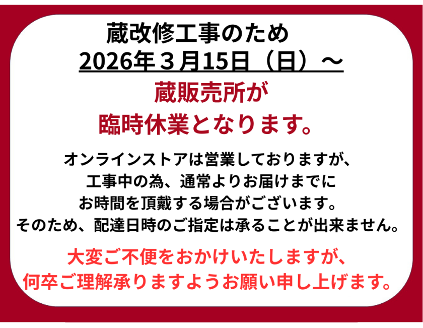 蔵改修工事に伴う臨時休業のお知らせ